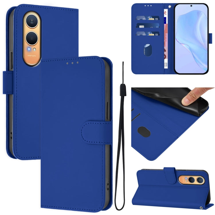 Funda de Cuero con Cordón para OnePlus Nord CE4 Lite 5G con Tacto de Piel (Azul Oscuro)