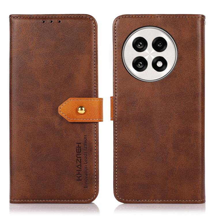 Funda de Cuero con Tapa y Textura Piel de Vaca para OnePlus 13R Global Khazneh (Marrón)