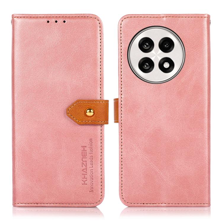Funda de Cuero con Tapa y Textura Piel de Vaca para OnePlus 13R Global Khazneh (Oro Rosa)