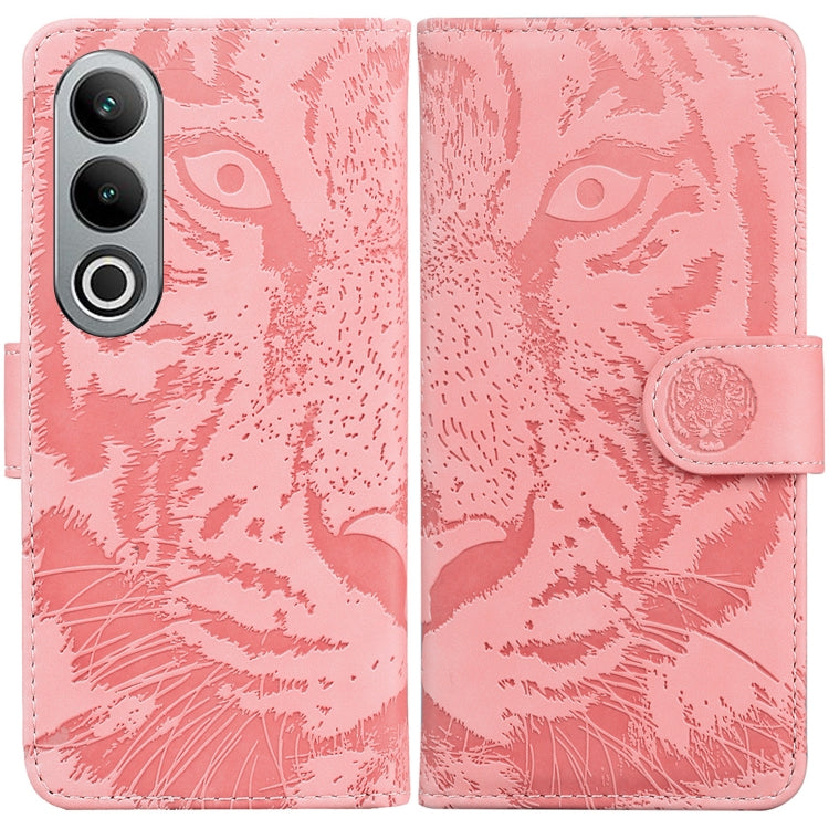 Funda de Cuero con Tapa para OnePlus Nord Ce4 5G con Patrón de Relieve de Tigre (Rosa)