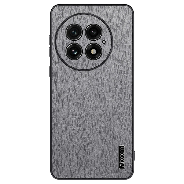 Funda para Teléfono OnePlus 13 a Prueba de Golpes de Cuero con Corteza de Árbol (Gris)