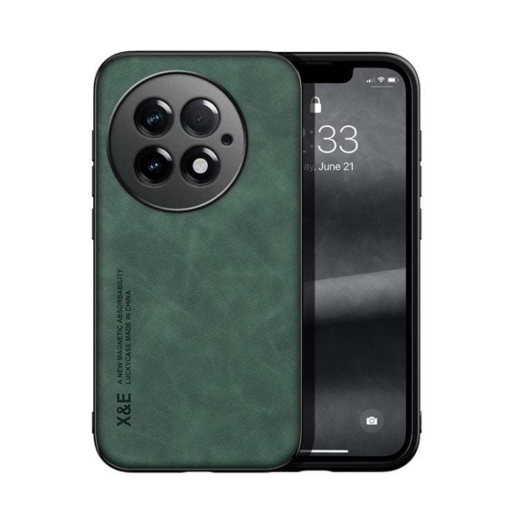 Funda de Cuero para OnePlus 13 con Parte Trasera Magnética y Tacto Agradable (Verde)