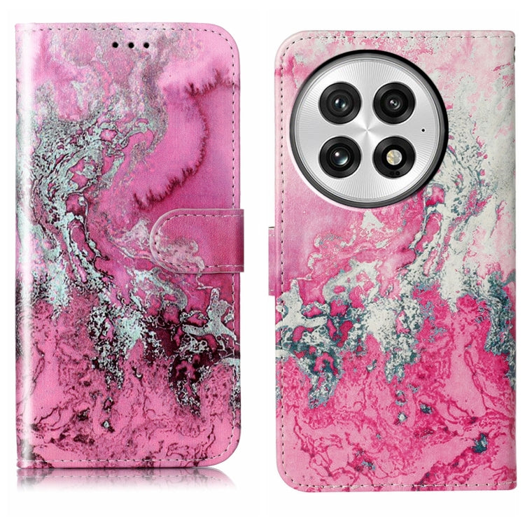 Funda de Cuero para OnePlus 13 con Patrón Mármol y Dibujo de Colores (Agua de Mar Rosa)