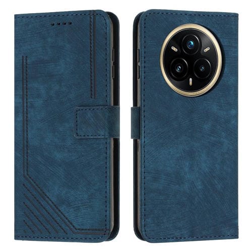 Funda de Cuero con Estampado de Rayas y Cordón para Realme 14 Pro (Azul)