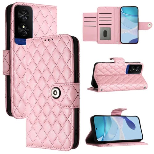 Funda para Teléfono TCL 405/406/408 Cuero con Tapa Textura Rómbica y Cordón (Rosa)