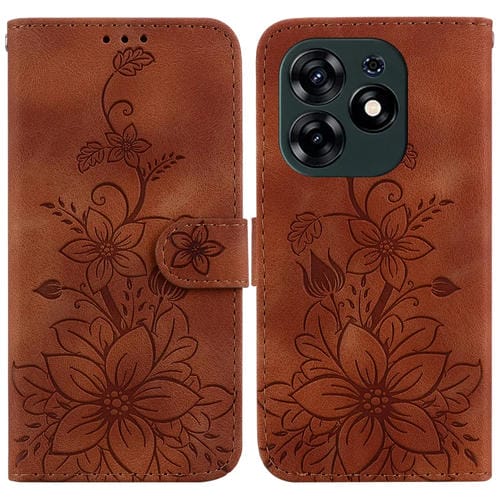 Funda de Cuero en Relieve para Tecno Pova 5 Lily para Teléfono (Marrón)