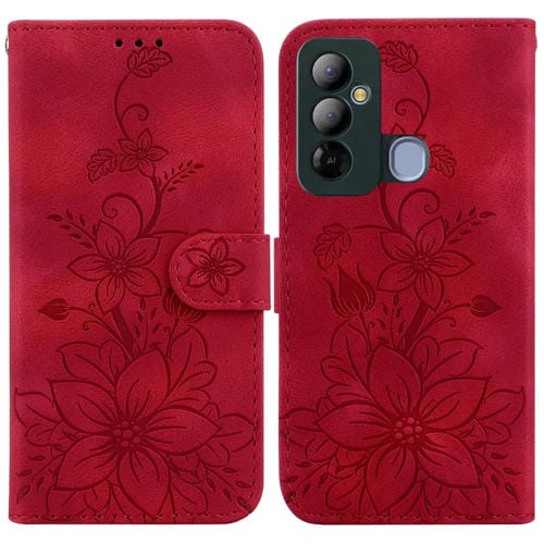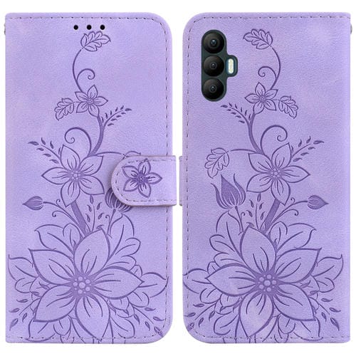Funda de Cuero en Relieve para Tecno Camon 19 Lily para Teléfono (Púrpura)