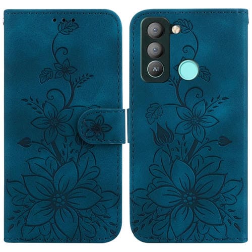 Funda para teléfono Tecno Pova 4G Ld7 Lily cuero en relieve (Azul Oscuro)