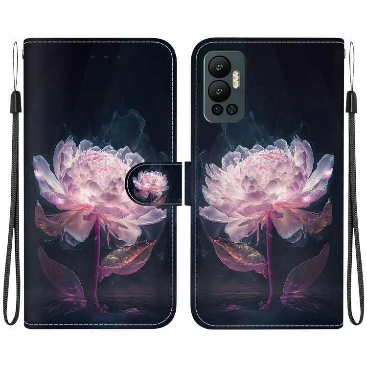 Estuche de Cuero para Infinix Hot 11 2022 con Dibujo Coloreado y Textura de Cristal (Peonía)
