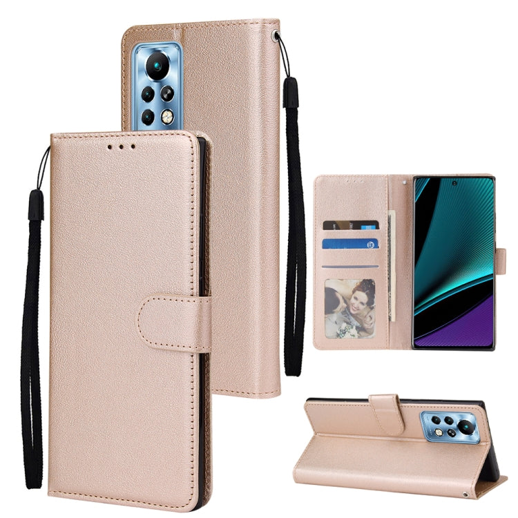 Estuche de Cuero para Infinix Note 11 Pro con Tapa Horizontal Multifuncional y Tres Ranuras (Oro)