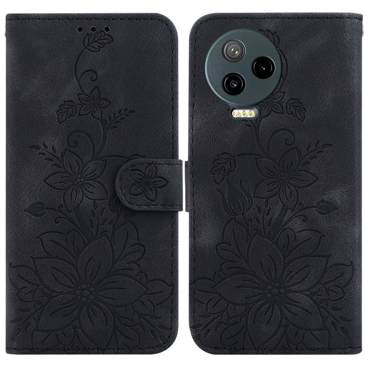 Estuche de Cuero para Infinix Note 12 Pro 4G y Note 12 (2023) con Relieve de Lirio (Negro)