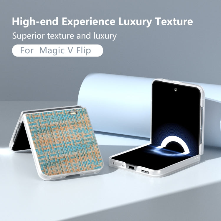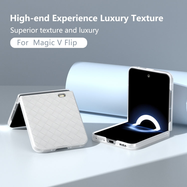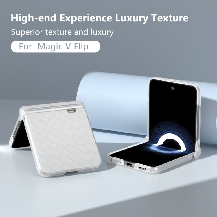 Estuche para Honor Magic V Flip de PU con Textura Tejida y Marco Translúcido Esmerilado (Blanco)