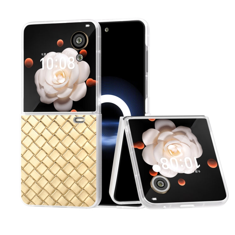 Estuche para Honor Magic V Flip de PU con Textura Tejida y Marco Translúcido Esmerilado (Dorado)