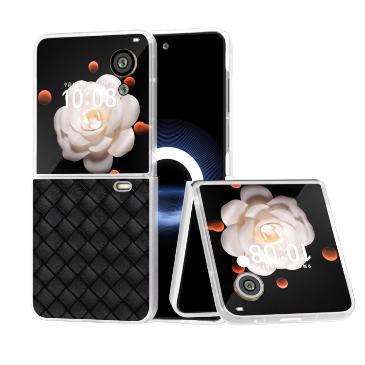 Estuche para Honor Magic V Flip de PU con Textura de Celosía y Marco Translúcido Esmerilado (Negro)