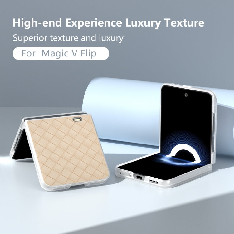 Estuche para Honor Magic V Flip de PU con Textura Tejida y Marco Translúcido Esmerilado (Beige)