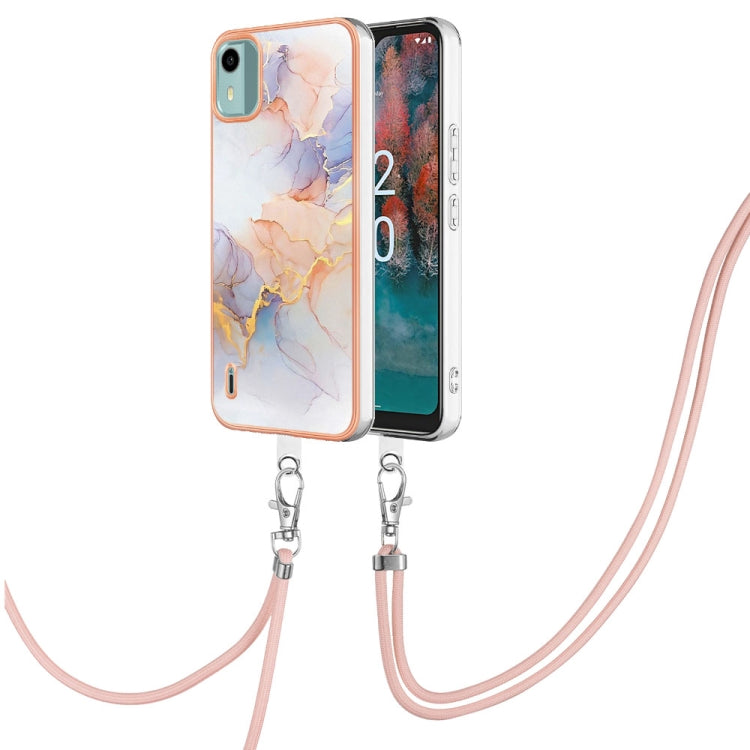 Estuche para Nokia C12 TPU con Galvanoplastia y Cordón (Mármol Blanco)