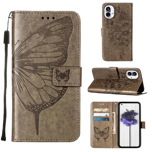 Estuche para Nothing Phone 1 de Cuero con Mariposa en Relieve (Gris)