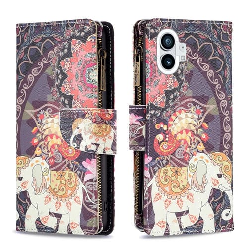 Estuche para Nothing Phone 1 de Cuero con Cremallera y Patrón de Dibujo a Color (Lotus)