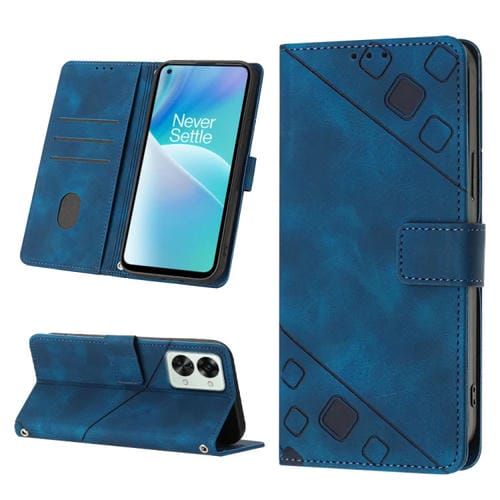 Estuche para OnePlus Nord Ce 2 5G de Cuero En Relieve con Tacto de Piel (Azul)