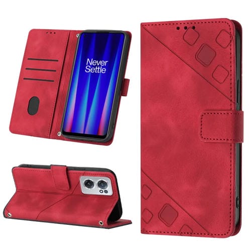 Estuche para OnePlus Ace 5G de Cuero en Relieve con Tacto de Piel (Rojo)