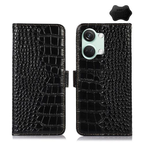 Estuche para OnePlus Nord 3 Ace 2V de Cuero de Vaca con Capa Superior de Cocodrilo (Negro)