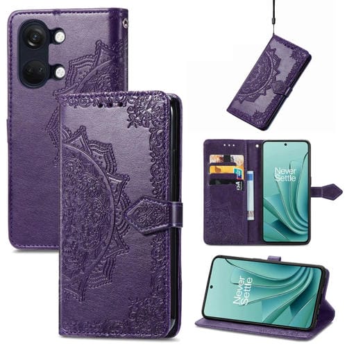 Estuche para OnePlus Ace 2V Mandala Flower de Cuero en Relieve (Púrpura)