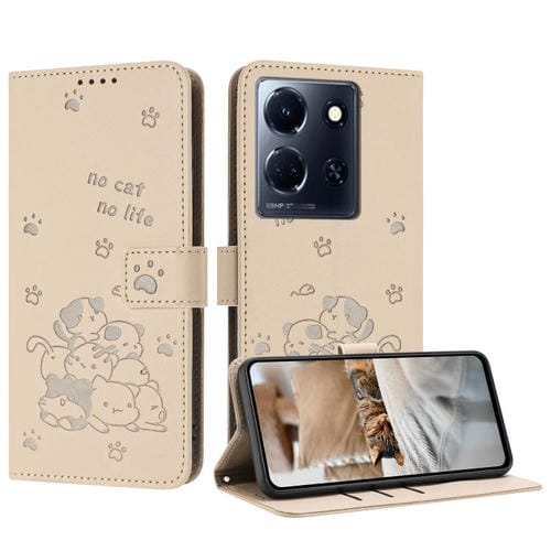 Funda de Cuero Infinix Note 30 Note 30 5G con Diseño de Gatito En Relieve y Cordón (Beige)