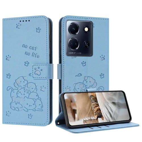 Funda de Cuero Infinix Note 30 Note 30 5G Diseño Gatito En Relieve con Cordón (Azul)
