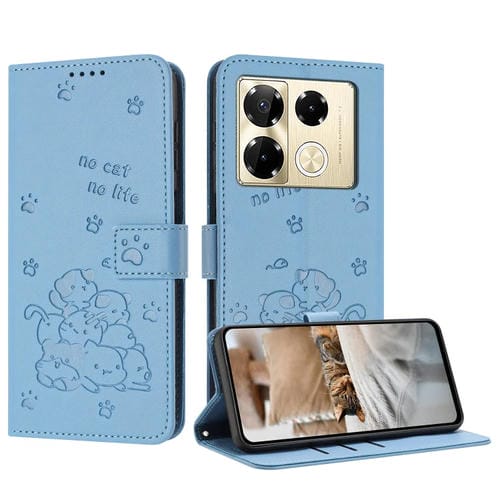 Funda de Cuero Infinix Note 40 Pro 4G/5G con Diseño de Gatito en Relieve y Cordón (Azul)