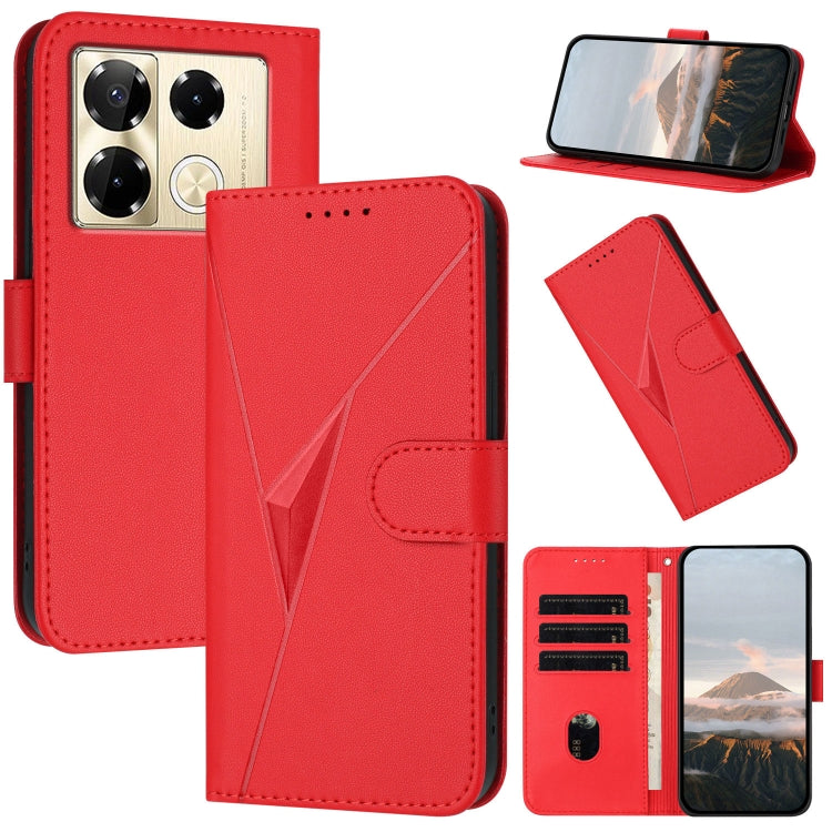 Funda de Cuero con Cierre de Hebilla y Patrón Triangular para Infinix Note 40 Pro 4G/5G (Rojo)
