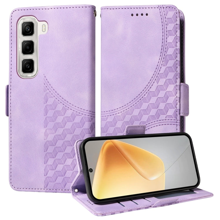 Funda de Cuero con Rombos en Relieve y Estrellas para Teléfono Infinix Hot 50 4G (Morado)