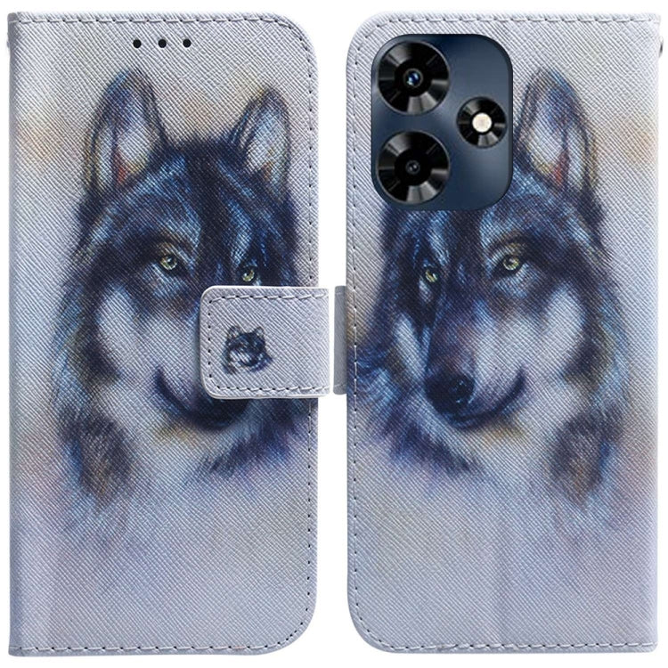 Estuche para Infinix Note 30I de Cuero con Tapa y Dibujo Coloreado (Lobo Blanco)