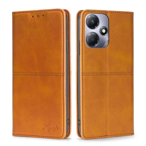 Funda de Cuero Magnético para Infinix Hot 30 Play 4G con Textura de Vaca (Marrón Claro)