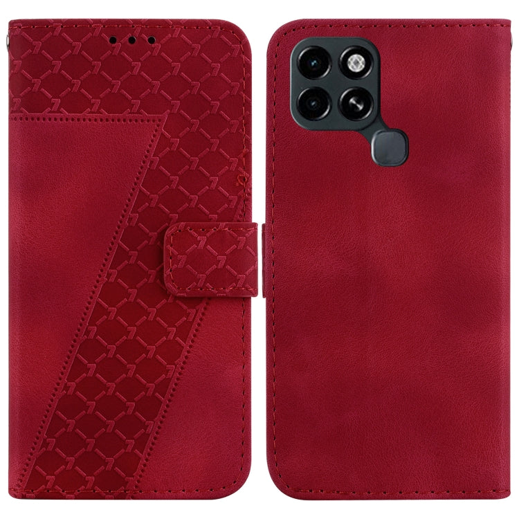 Funda de Cuero para Infinix Smart 6 en Relieve en Forma de 7 (Rojo)