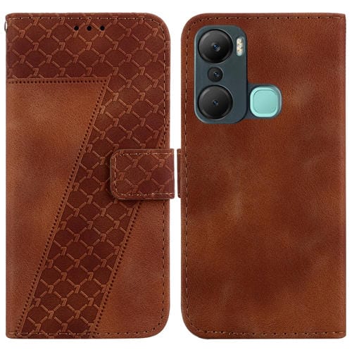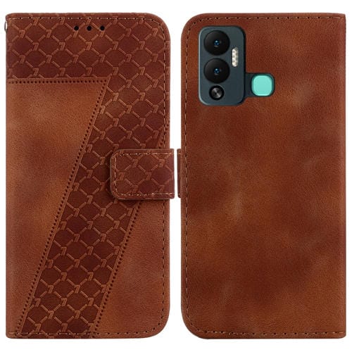Estuche para Infinix Smart 6 de Cuero en Relieve en Forma de 7 (Marrón)
