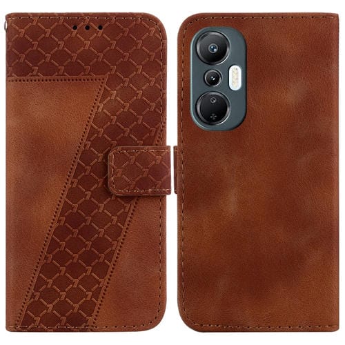 Funda de Cuero En Relieve en Forma de 7 para Infinix Hot 11 2022 (Marrón)