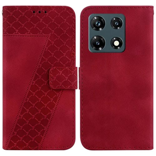 Funda de Cuero En Relieve en Forma de 7 para Infinix Note 30 Pro (Rojo)