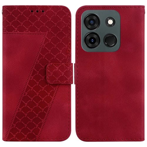 Funda de Cuero En Relieve para Infinix Smart 7 India en Forma de 7 (Rojo)