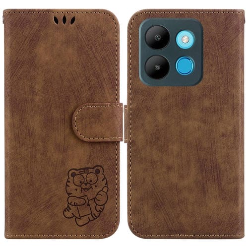 Funda para Infinix Hot 30 Play X6835 de Cuero con Relieve Little Tiger (Marrón)