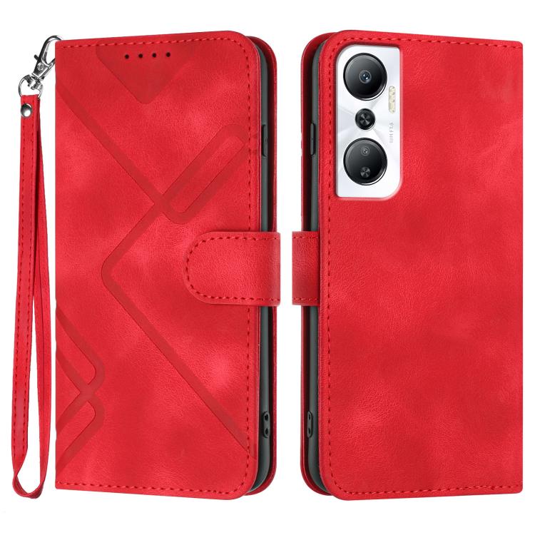 Funda de Cuero para Infinix Hot 20 5G con Diseño de Líneas y Tacto Suave (Rojo)