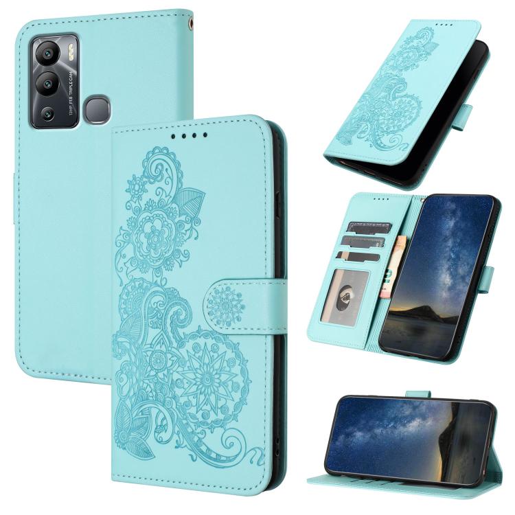 Funda de Cuero con Tapa y Relieve Flor de Datura para Infinix Hot 12I (Azul Claro)