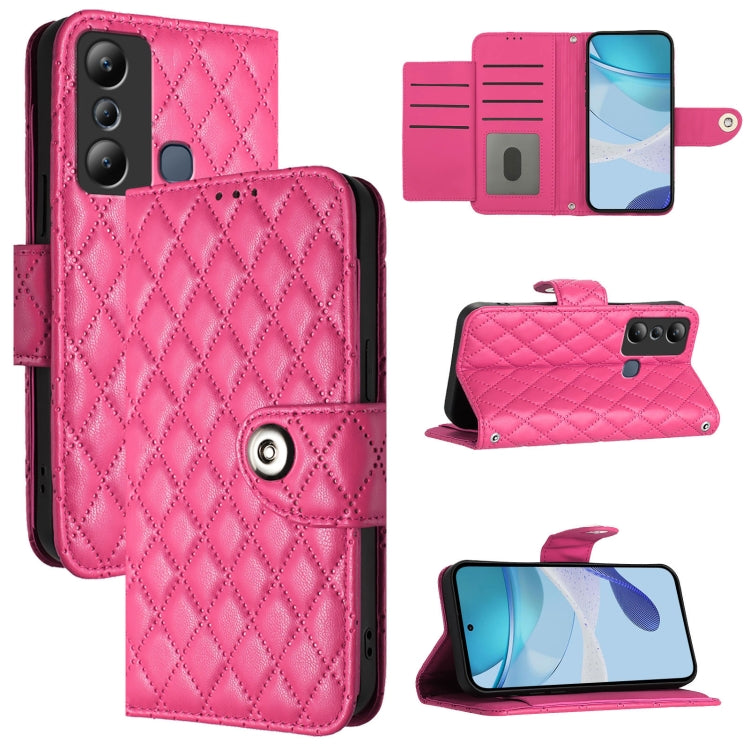 Funda de Cuero para Infinix Smart 7 HD con Tapa Textura Rombal y Cordón (Rojo Rosa)