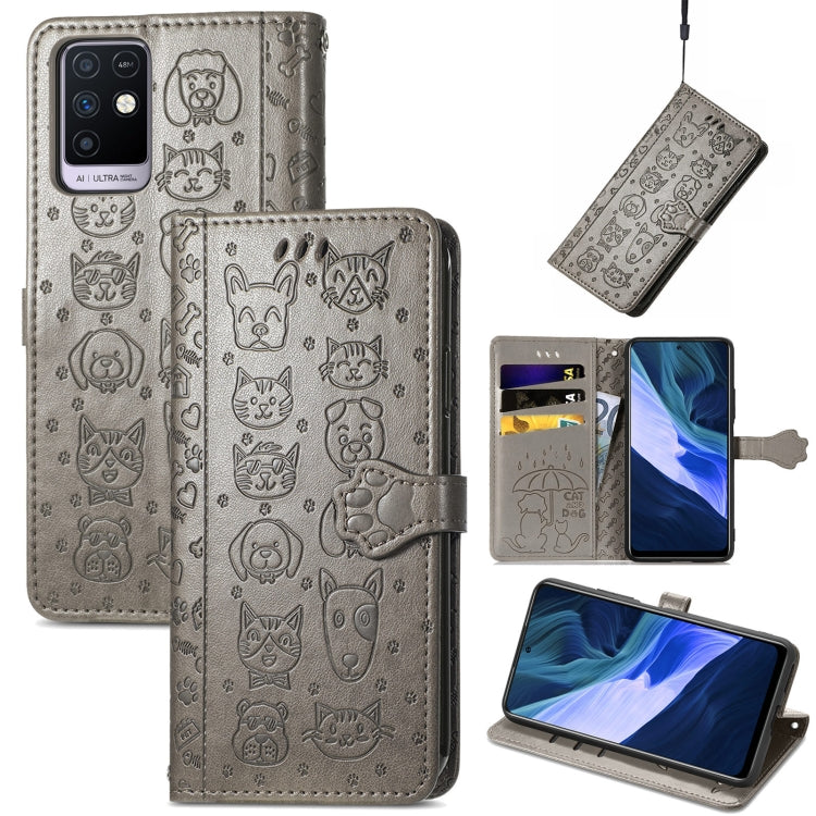 Estuche Cuero Horizontal para Infinix Note 7 con Soporte, Ranuras y Cordón de Gato y Perro (Gris)