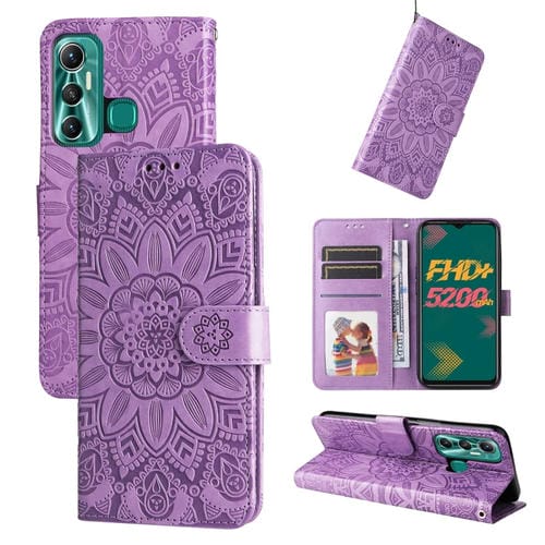 Estuche para Teléfono Infinix Hot 11S Nfc Cuero con Estampado de Girasol en Relieve (Púrpura)