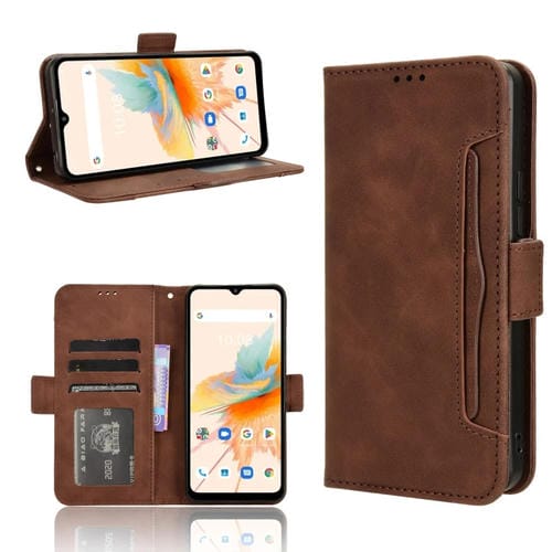 Funda de Cuero para Umidigi A15 y A15C con Ranuras para Tarjetas y Textura Becerro (Marrón)