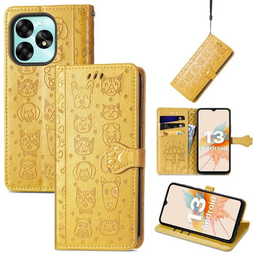 Funda para Umidigi A15C de Cuero con Relieve Perro y Gato (Amarillo)