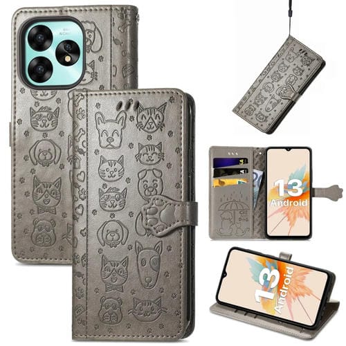 Funda de Cuero Umidigi A13 Pro 5G con Relieve Perros y Gatos (Gris)