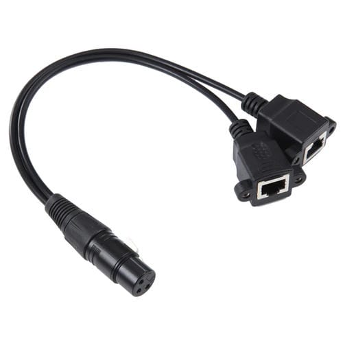 Cable de Extensión de Red LAN Ethernet 3 Pines XLR Macho a 2 RJ45 Hembra 30 cm (Negro)