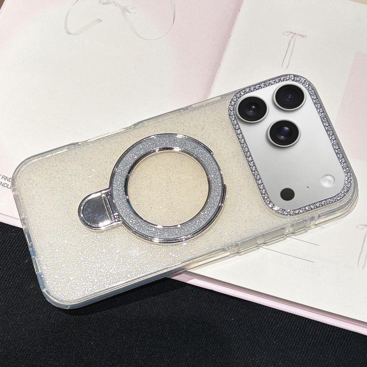 Funda MagSafe con diamantes brillantes degradados para iPhone 17 Pro Max (blanca)