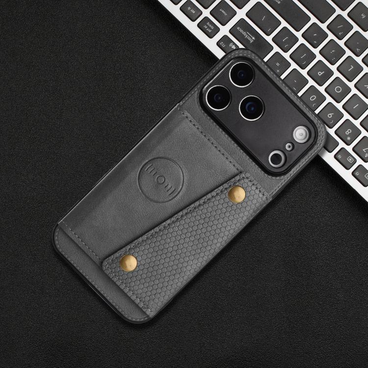 Funda magnética con doble hebilla y ranuras para tarjetas para iPhone 17 Pro Max (gris)